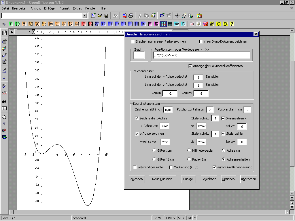 Taschenrechner, DMaths, DMaths-Plotter, DMaths-Konstruktion, Symbole Debian GNU/Linux